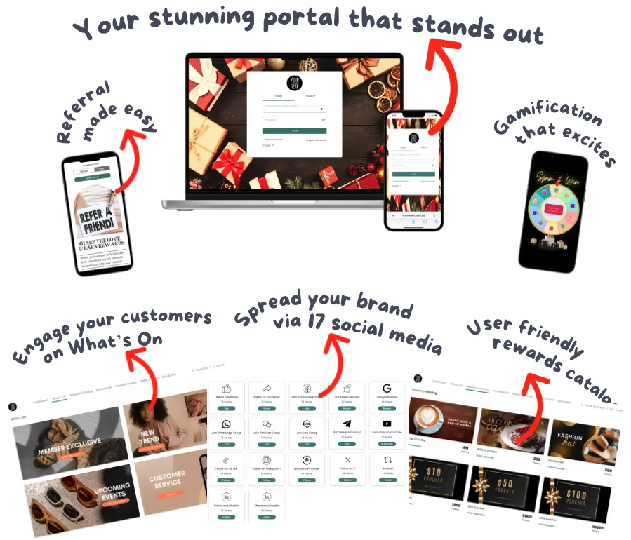 Watch your brand soar above the competition and captivate your customers like never before. With rewards for social media shares, dynamic referral programs, gamifications and more.